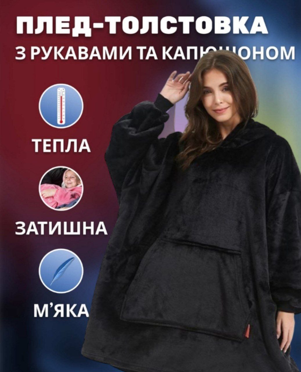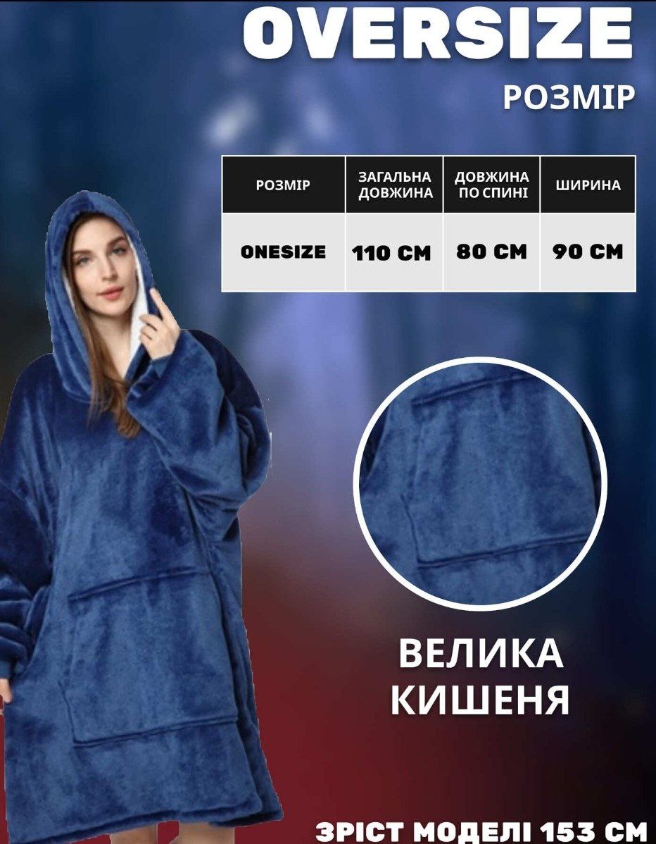 Тепер не треба буде одягати светр і залазити під плед – всього одна річ здатна подарувати вам тепло і затишок. Плед-толстовка зроблена для того, щоб ви могли просто сховатися в цій великій та м'якій кофті - зігріватися.